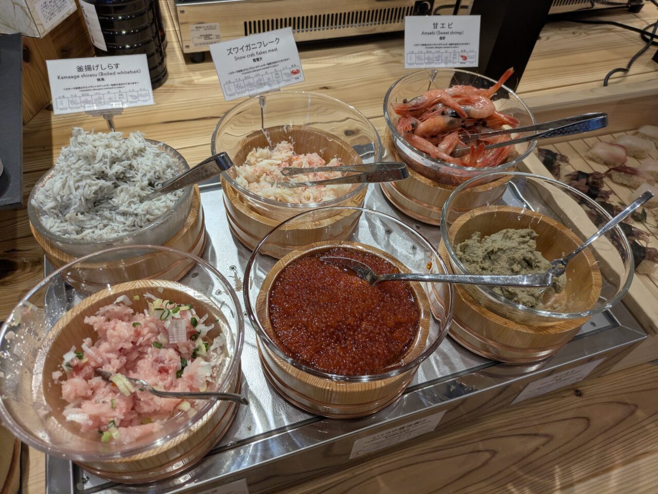 食事★★★★★朝から海鮮丼を好きなだけ楽しめる贅沢感。富山名物の種類が圧倒的。